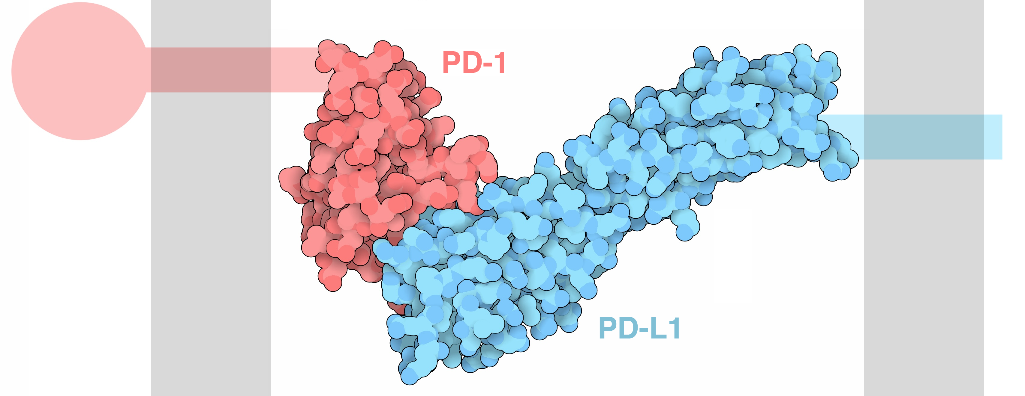 PD-1 binding to PD-L1. Grey vertical regions represent the cell membranes. Adapted from https://pdb101.rcsb.org/motm/204.